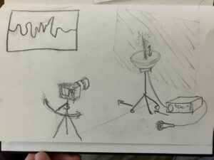 Während der Arbeit mit Audiosoftware wie Logic oder Ableton begegnen dem Nutzer häufig digital aufgezeichnete Audiowellen. Sie sind wichtig, um bestimmte Impulse oder Rhythmen im Audiomaterial zu erkennen oder zu verändern. Im Falle von aufgenommener Sprache sind diese Wellen ein fast perfektes Abbild der durch Luftschwingungen übertragenen sprachlichen Kommunikation des Menschen. Dies finde ich faszinierend, da hier deutlich wird wie naturhaft-abstrakt geformt diese Signale, die das Ohr bzw. das Gehirn sofort versteht, eigentlich sind. Mithilfe einer Kamera und einem Lautsprecher habe ich im Rahmen dieses Projekts versucht, eine momenthafte Darstellung der Audiowellen einzelner Wörter im echten Raum zu entwickeln. Hiervon ausgehend wurde untersucht, ob diese Art der Darstellung von Sprache auch eine Übersetzung sein kann. Welche Informationen sind den entstandenen Bildern zu entnehmen und könnte man lernen sie zu lesen?