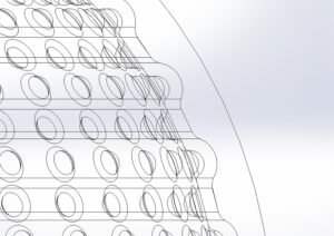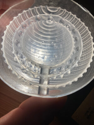Ich setzte mir die Herausforderung, dies in eine Lampe zu integrieren und begann mit dem 3D-Drucken der ersten Modelle, die darauf abzielten, diesen Effekt hervorzuheben und ihn in Beziehung zu Licht zu setzen. Für die Herstellung dieser Modelle verwendete ich den SLA-Druck, da ich ein wasserdichtes und mindestens lichtdurchlässiges Material benötigte. Bei der weiteren Optimierung habe ich aber schnell gemerkt, dass ich an die Grenzen dieses Herstellungsverfahrens stoße, also wollte ich herausfinden, wo diese für das von mir erstellte Design genau liegen. Ich fing also an, viele kleine Modelle zu drucken, welche die entscheidenden Parameter meines Designs erproben sollten und diese an ihr Limit brachten, so lange bis der Druck fehlerhaft verlief.