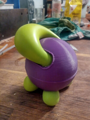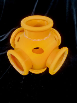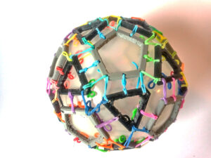 Fünf Winkel und Dreiecke bestimmen die Kugel. Die einzelnen Elemente werden mit sogenannten „Loom Rubber Bands“ zusammengehalten. Beim Einsetzen und Aufblasen des Ballons kann die Kugel durch die Elastizität der Bänder und Formelemente vergrößert werden. Jedoch reagierte die flexible Außenhülle mit der elastischen Innenstruktur und das Ergebnis war nicht zufriedenstellend – es behält die gleiche Form.