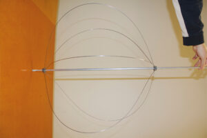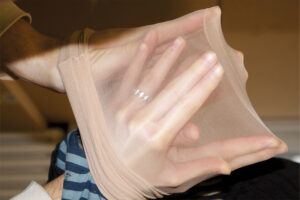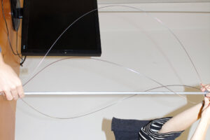Die Eigenschaften von Feinstrumpfhosen und Federstahlstäben, sich an die gegebenen Bedingungen auf ihre Art anzupassen, aber auch in ihre Ursprungsform zurück zu springen, erwies sich für dieses Experiment als sehr passend.
