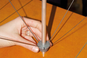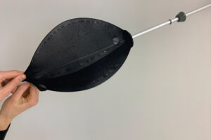 Die Konstruktion besteht neben der Haut, aus insgesamt 10 Teilen, jeweils drei 33cm langen Federstahlstäben, zwei dreiteiligen Verbindungsstücken und einer Gewindestange in 9,18 oder 27cm länge.