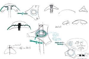 Die Formen werden durch die Veränderung der Winkel sowie Höhe und den dadurch entstehenden Minimalflächen generiert.