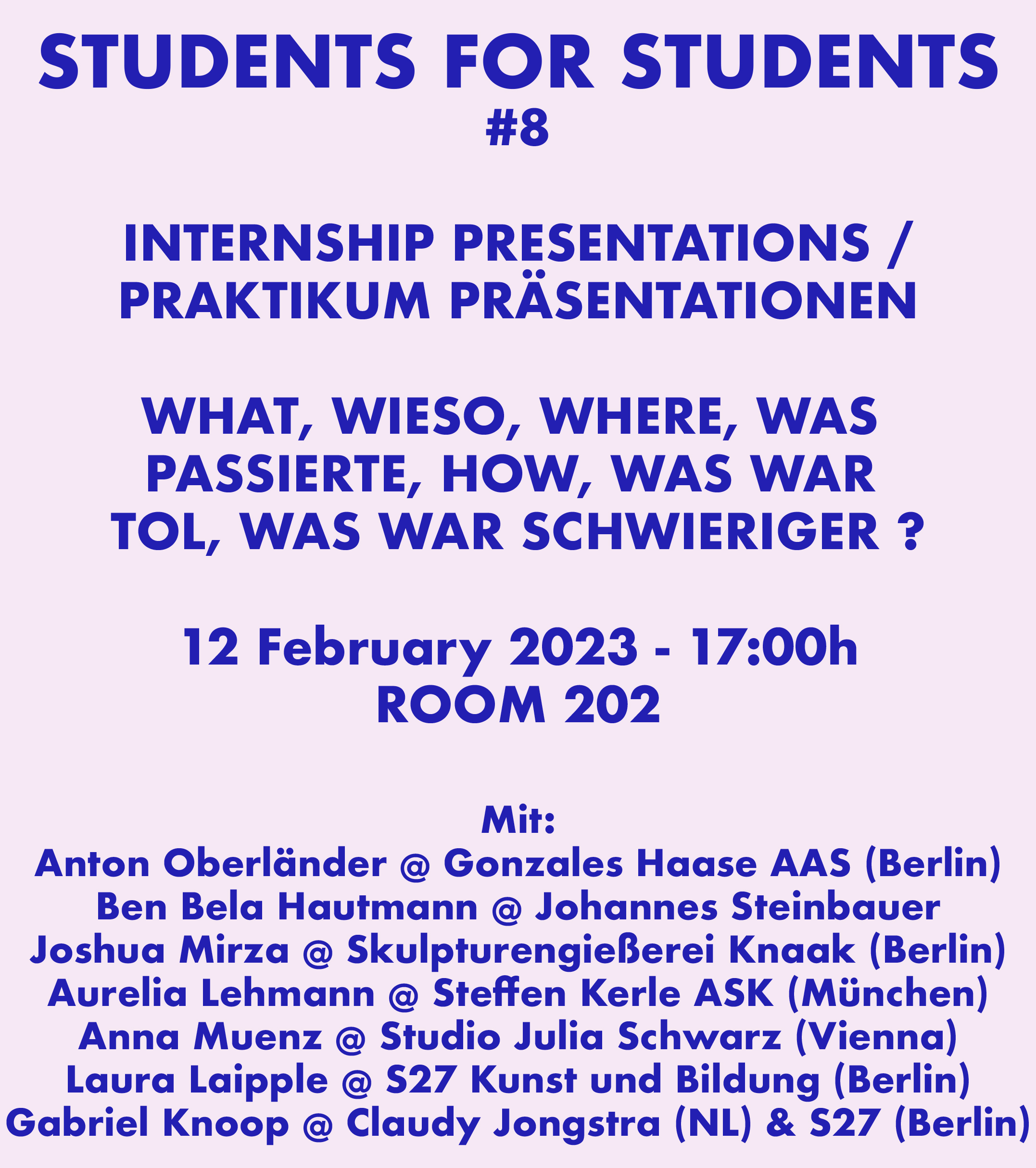 In life presentations a recent group of interns present their whereabouts and the do and don’ts for internships: where were they, what did you do there, what was super and not so super, what did they learn, what can they advise, what was the overall experience, did you get paid, etc…