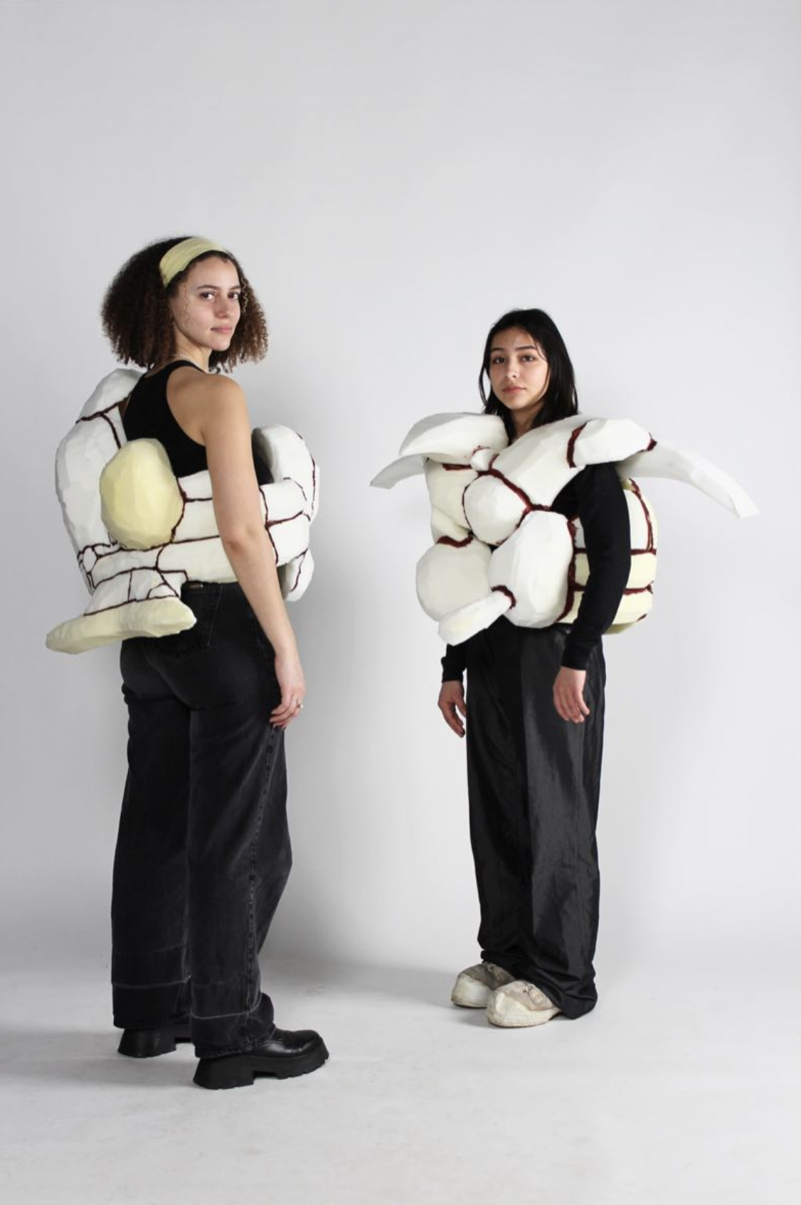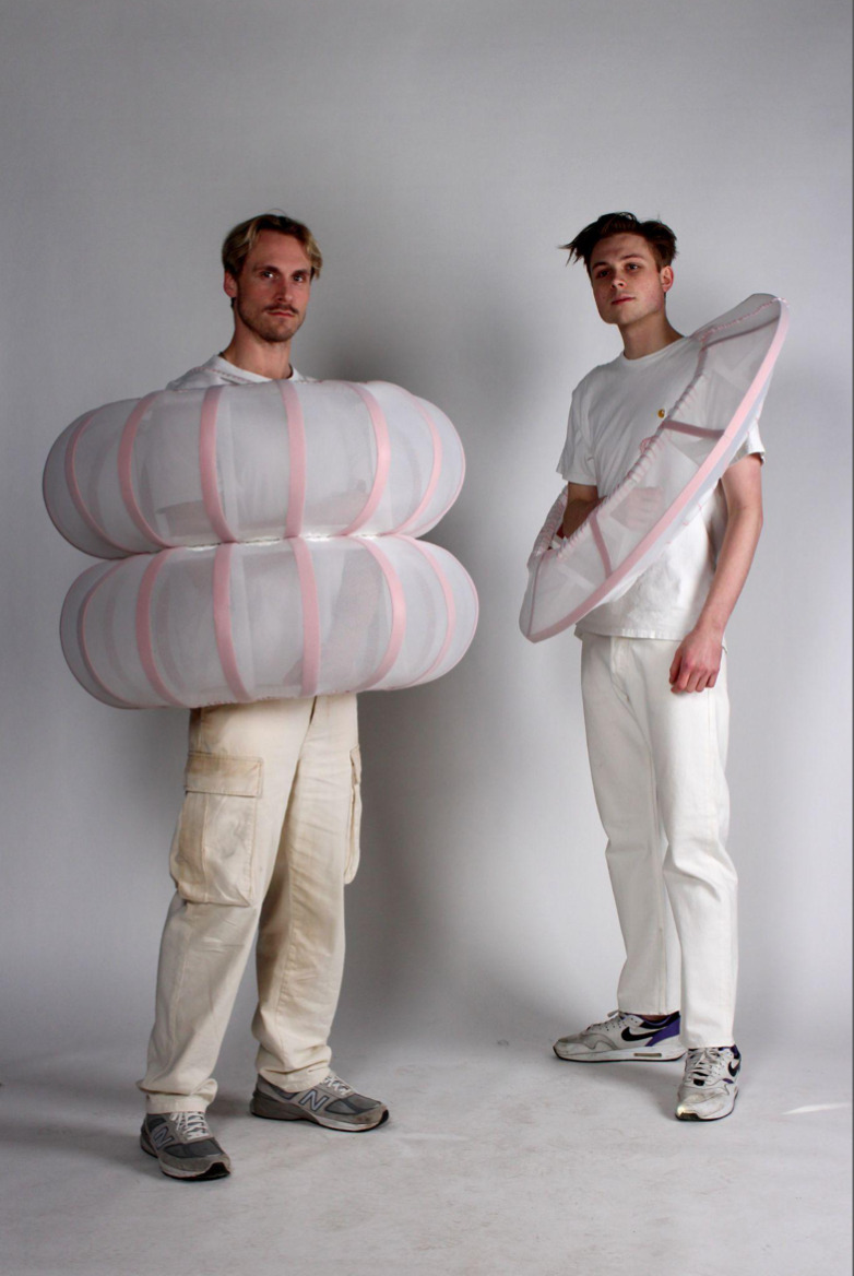 Das Objekt „bedeckt“ den Oberkörper, ähnlich wie eine Jacke. Da es sich um eine abstrakte dreidimensionale Form handelt, verfügt es über eine eigenständige Statik, ähnlich wie Gebäude. Es ist aber weder ein Gebäude, noch ein Kleidungsstück, sondern dazwischen.