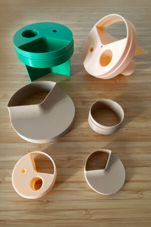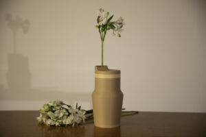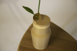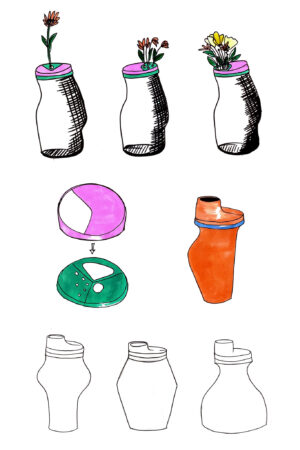 IN BLOOM is a flower vase whose purpose is to allow flexibility but also precision in the way we present and take care of our flowers. The unique function of the vase stems from the rotating mechanism of the vase’s lid. One can rotate the top opening of the lid to expose holes of different sizes and by this adjust the opening of the vase to accommodate flowers of different sizes or quantities. This simple mechanism makes it into a vase that can store just one single flower picked on the way back home, same as bunch of flowers or an entire bouquet.