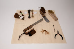 Ein Objekt welches griffbereit das alltägliche Anziehen der Schuhe angenehm gestaltet sowie für eine schnelle Säuberung und Politur der Schuhe gleich zur Stelle steht.