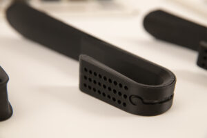 Der U-förmige Griff erlaubt eine Nutzung beider Funktionen ohne jeweils in das andere greifen zu müssen, wobei es Spielraum bietet, die Hand in unterschiedlichen Wegen zu positionieren.