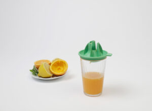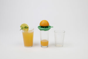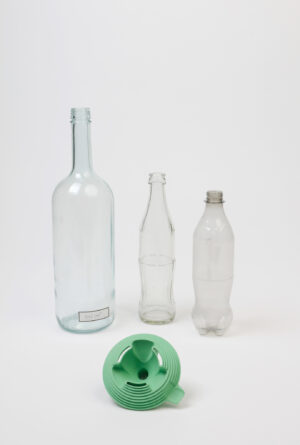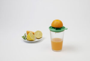 Mit seiner konkaven Seite mit Lamellen, fungiert KONVKA als Entsafter. Wenn es umgedreht wird, verwandelt sich die konvexe Seite in einen Trichter. Der Entsafter passt sich mühelos an Gläser unterschiedlicher Größen an, während die Trichterfunktion ein problemloses Eingießen in normale Glas- und PET-Flaschen ermöglicht.