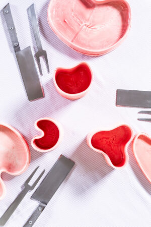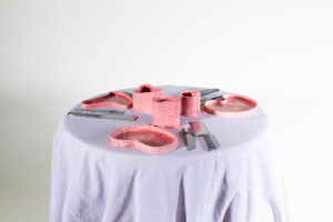 Das Ergebnis bewegt sich zwischen funktionalen Gebrauchsgegenständen und Installation, die das klassische Tischgedeck aufgreift. Durch Form, Farbe und Kontext werden bekannte und zugleich abstrakte Bilder geschaffen.