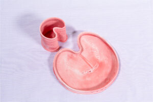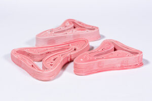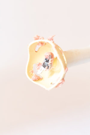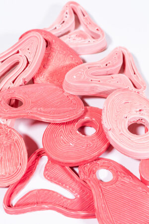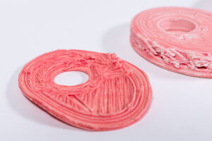 Dabei wurde eine Übersetzung in das Medium von 3D gedrucktem Porzellan benutzt, um innerhalb der Thematik auf der einen Seite ein traditionelles, wertvolles Material zu verwenden, dass eng mit unserer Esskultur verknüpft ist, auf der anderen Seite mit der Ästhetik von organischer Imperfektion und synthetischer, generischer Struktur und Perfektion zu spielt.