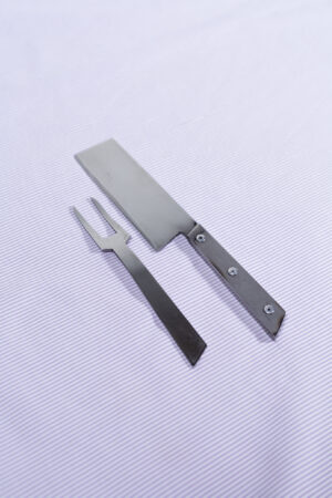 The addition of cutlery creates a link to familiar butchering tools, which in turn refer to the origin of meat and create a kind of symbolic proximity, while this sharp, uncomfortable cutlery is used by the diners.