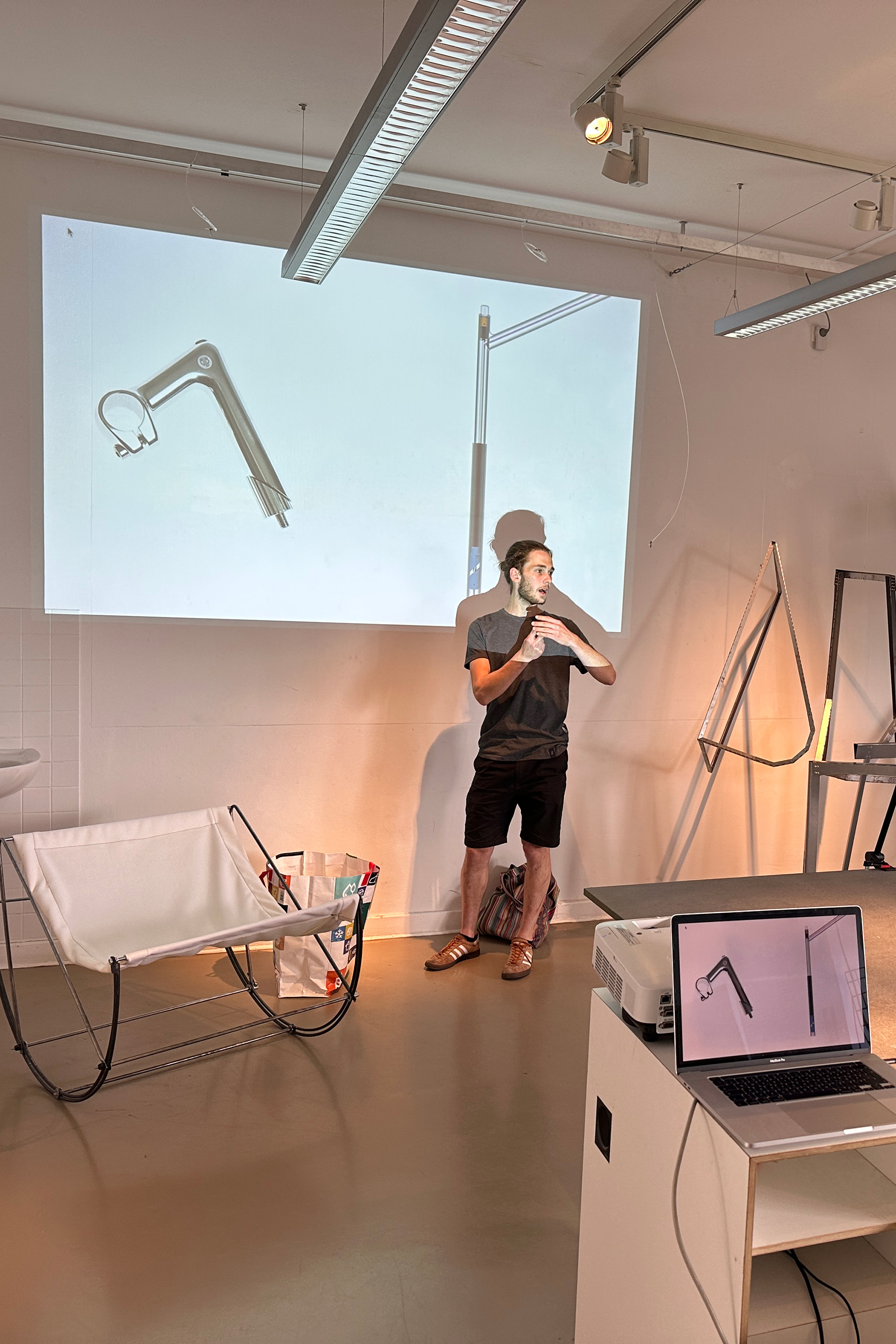 Technologische Prinzipien sind die Grundlage innovativer und spezifischer Eigenschaften der uns umgebenden Produkte. Wir wollen die versteckten Prinzipien, besonderen Verbindungs- und Materialtechnologien, Tragwerkkonstruktionen und speziellen Mechanismen aus der Welt der Fahrräder analysieren und in der Folge ein herausgearbeitetes Prinzip, ein spezifisches Detail als Ursprung eines Entwurfs verwenden. Inhalt des Seminars ist also die Transformation und experimentelle Weiterentwicklung eines technischen Prinzips in einen Möbelentwurf – z.B. Hocker, Tisch, Regal. Wir werden die Eigenschaften, Grenzen und Potentiale der ausgewählten technologischen Prinzipien recherchieren und uns auf Basis von Referaten und Vorträgen eine fundierte Know-How-Basis erarbeiten. Kernaufgabe des Seminars ist der Entwurf, die Konstruktion und der Bau eines Prototyps auf Basis eines CAD-Modells.