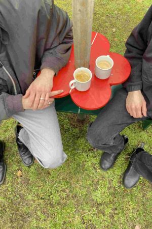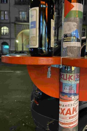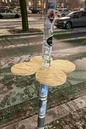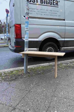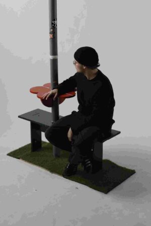 The objects can function as a missing garden or balcony, can be understood as a bar counter in front of a Späti/bar, can function as a coffee table at the bus stop or as a table in the park during the lunch break. It will work differently for each person. Flower1 and Leaf1 are specially designed so that it can be implemented by anyone with a little manual dexterity. Therefore, one goal is to start a cooperation with the city of Berlin, in which the city of Berlin or individual neighborhoods offer workshops where you can build your own „Flowers for the Streets“ and then attach them to your own favorite corner of the city, for a while, for a short stay or forever. This option is only possible because these objects, like a bicycle, can be locked without restricting their function as a table or bench. If you do not want this, you can buy the objects on request, but it is still up to the person which color the objects get.