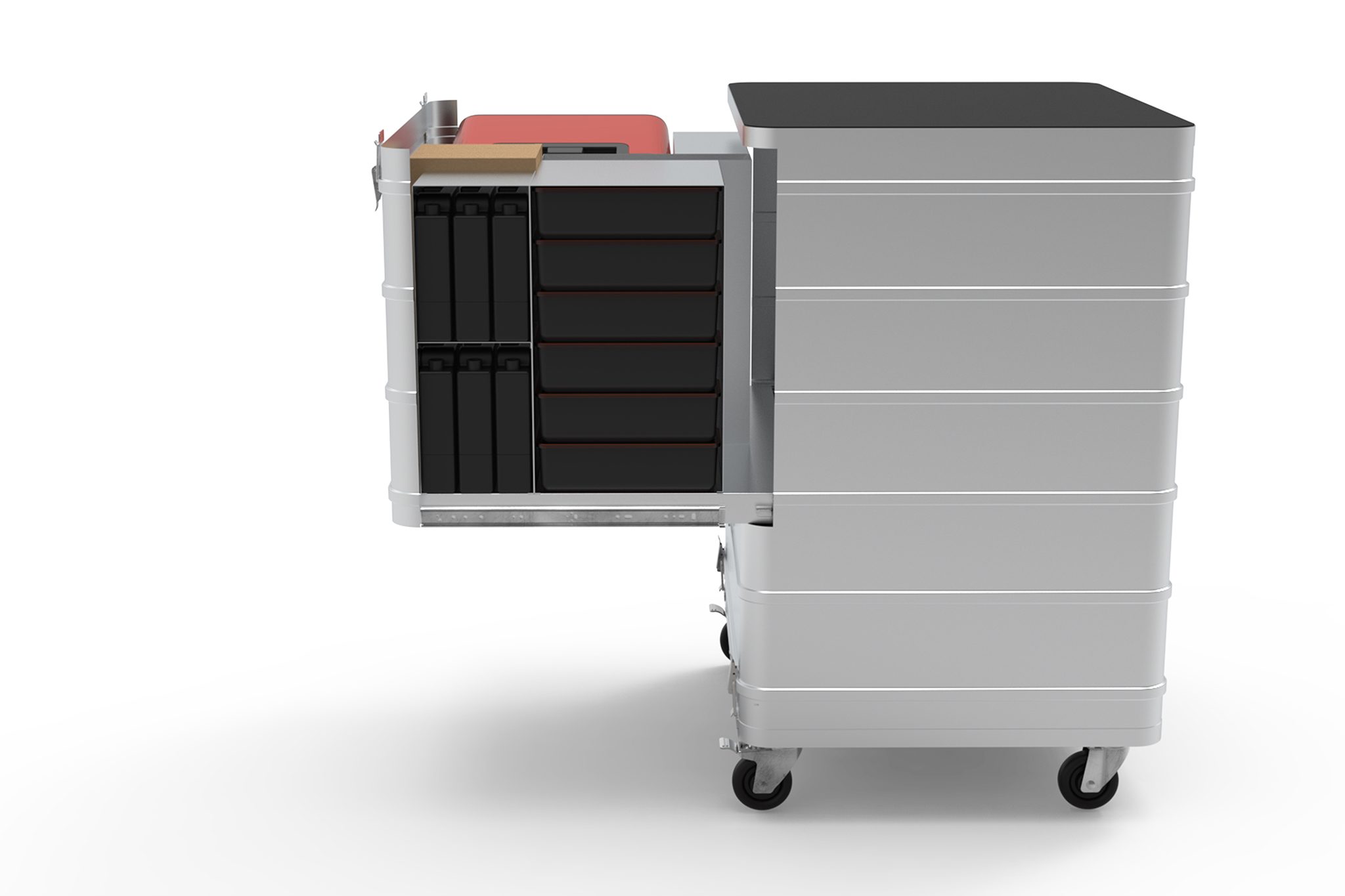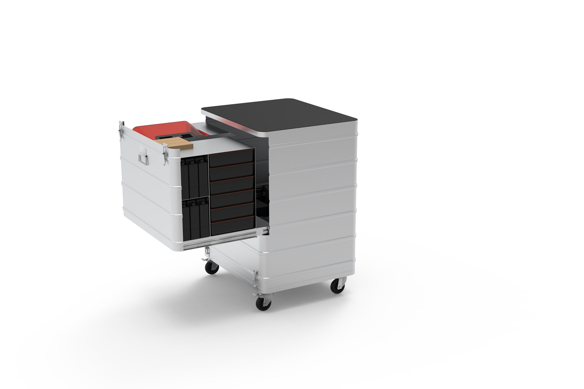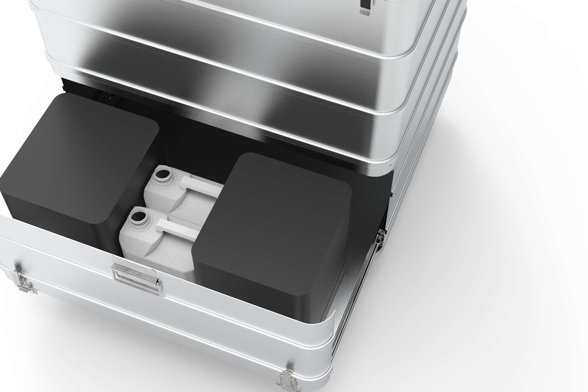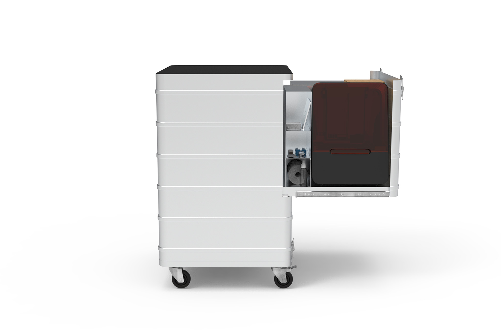 This is where the new emergency package comes in play, developed by working closely with various stakeholders to simplify on-site printing. A robust aluminium box, standard in international logistics, doubles as a dust and shock-proof housing and a work platform for post-processing, with a construction that facilitates the necessary levelling for the printer’s operation. The box accommodates both the printer and the wash & cure process, as well as all the necessary materials. Industrial pull-out drawers allow easy accessibility. Often located on unstable power grids, unreliable for 3D printing, a generous power bank not only provides the necessary security, but also allows solar panels to be connected.
