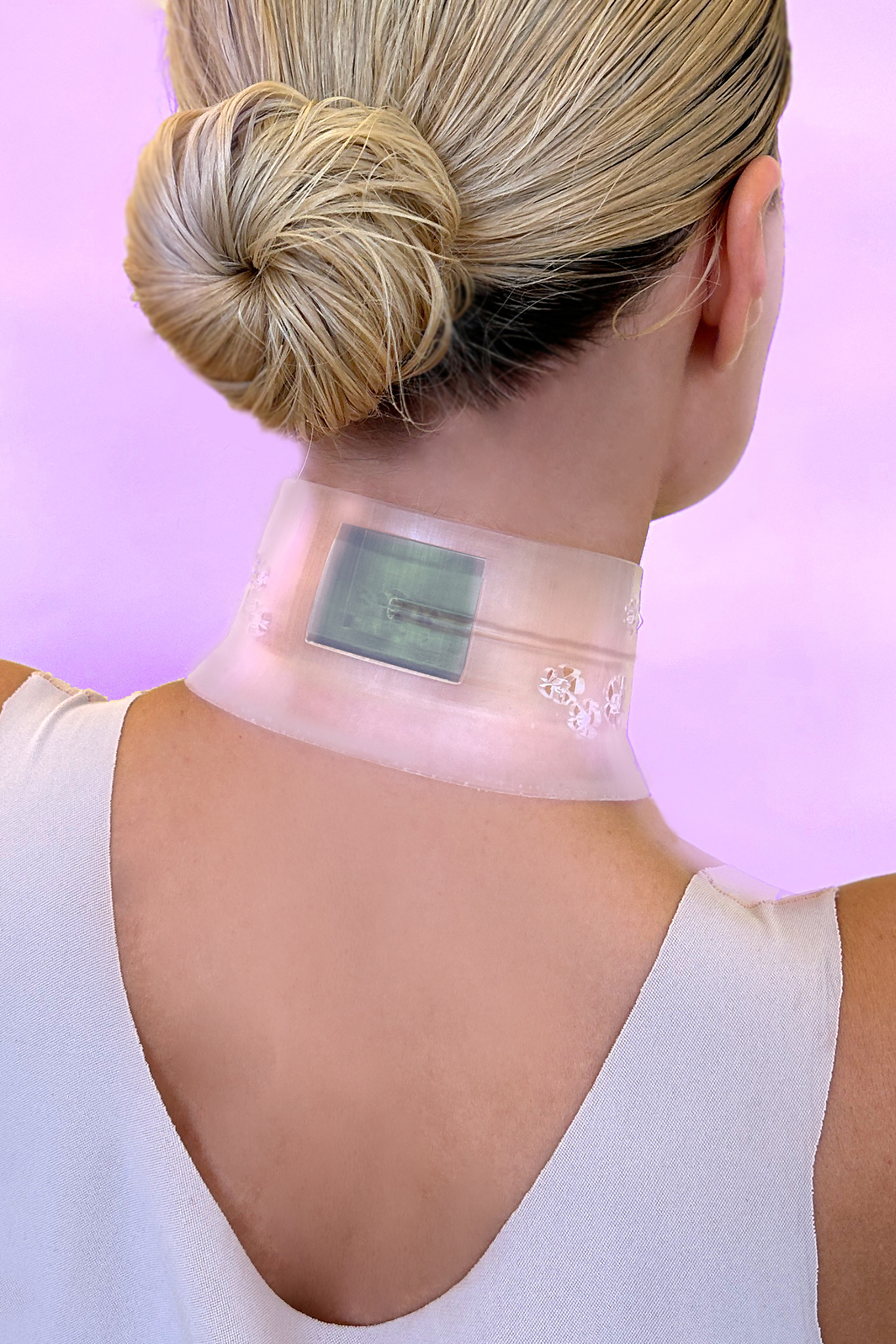 The process of customization for SUNCARE remains centered on the user’s unique anatomy. Through advanced 3D scanning technology, the wearable is tailored to fit the individual’s neck contours, ensuring both comfort and efficacy. The solar cell brooch adds an extra layer of personalization, allowing users to express their style preferences while contributing to the wearable’s functionality.