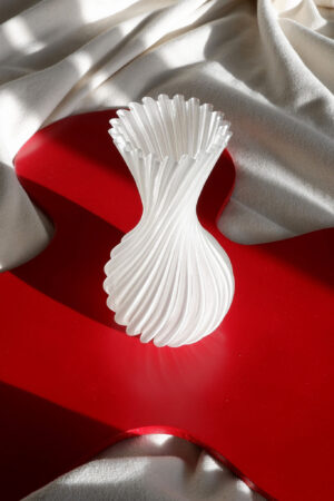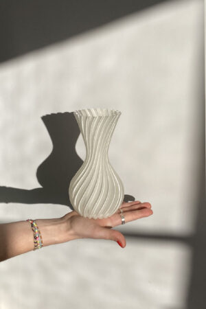 Mit der Vase twist können die Benutzenden Dampf ablassen, indem sie die Vase gegen die eigene Muskelkraft „würgen“. Sie ist aus transparentem TPU Filament 3D-gedruckt, wodurch sie sehr flexibel ist und immer wieder zurück in ihre Form findet. Während des Twistens wird die Oberflächenstruktur zusammengestaucht, was während des Benutzens gleichzeitig die Hände stimuliert.