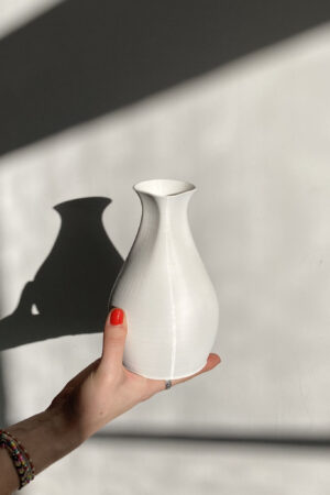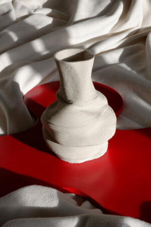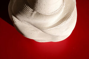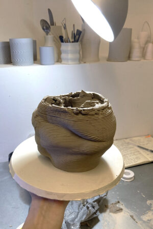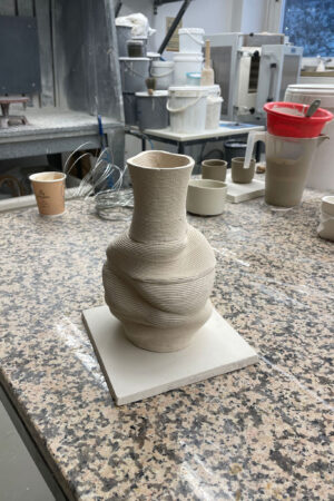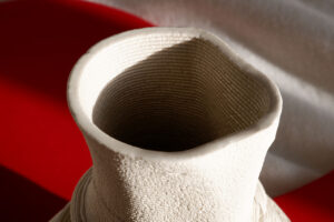 Die Keramik 3D-gedruckte Vase scream verfügt über eine schallabsorbierende Textur im Inneren, wodurch die Lautstärke reduziert wird und es möglich wird, hineinzuschreien ohne Andere dabei zu stören. Die organische Form ist inspiriert an einem Schrei, der innerhalb der Vase eingesperrt ist und nachaußen dringen möchte.