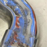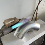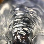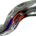 First, I worked with metal sheet : I heat and pound them with different tools. But what for ? During a walk in streets, I found gutters pipes. I did experiments with it, heating and puntching to create patterns and colors. I found interesting to work with a used object, especially with an object which is not made for this, hijack it. I puntching with different tools (hammer, punchs, plastic pipes…) to create patterns and distortions on the initials pipes. I used this technique to put together all the pipes and build an object without other assembly methods. Morever, I used only gutters fixings to hang the object on the wall. So I work with metal gutters to create two luminous sculptural objects, by playing and using the light source to bring out uncontrolled patterns on them.