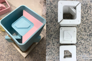 Mein Semesterprojekt ist eine Caféset, bestehend aus zwei Tassen, drei Tellern und einer Kaffeekanne. Wobei die drei Hauptaspekte meines Designs darin bestehen, dass erstens, die Teller vertikal in einer Reihe aufgestellt werden können und zweitens alle Bestandteile die Form eines Quadrats haben und somit problemlos stapelbar sind. Was das Hauptziel meines Designs darstellt, denn anders als herkömmliches rundes Küchengeschirr, ist dieses in der Lage alle Ecken eines Schrankes zu füllen und sorgt demzufolge im Wesentlichen für einen effiziententeren Platzverbrauch. Darüberhinaus fügen sich durch die genau abgestimmten Maße, die Teller, Tassen und Kanne zu einem perfekten Würfel zusammen. Daher resultiert auch der Name “Qube”, welcher auf das englische Wort Cube, zu deutsch:”Würfel” anspielt.