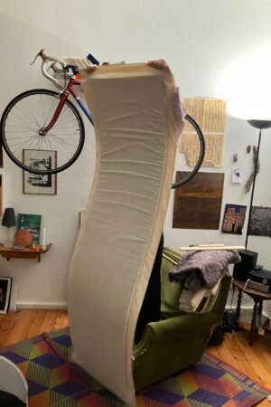 „Quiet“ is both an acoustic panel for dampening noise and a room divider. The clamp is held in place and can be easily removed with just one tightening screw at the bottom. Two hooks attach the panel to the clamp. These easy to use mechanisms enable the user to quickly rearrange several panels to create a different spatial situation. The fabric that is used for the panel is typically used for canvases and is one hundred percent cotton. Therefore it is ideal for individualisation like painting, dyeing or printing. Because of this the panel serves both as a practical and an aesthetic object.