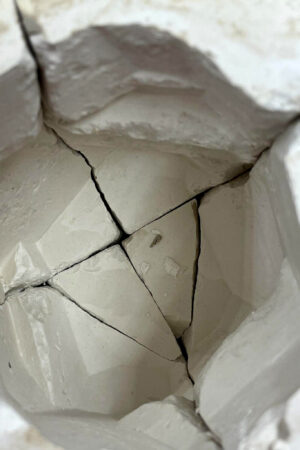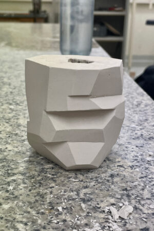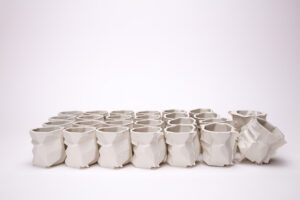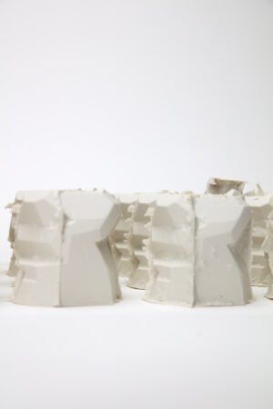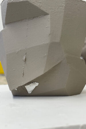 In diesem Projekt bearbeitet das Thema Zerfall, welcher meistens eintritt, wenn zwei Komponenten nicht zusammen existieren sollten. Dieses Projekt zeigt den Prozess des Auflösens, das Akzeptieren der Tatsache des Alterns, den Prozess der Zerstörung und die Möglichkeit des Versagens der Funktion. Die Gipsform wurde so konzipiert, dass sie sich bei jedem Abguss verändert und auflöst. Hierfür wurde der Gips „falsch“ angemischt. Obwohl sich die ursprüngliche Form auflöst, zeigt sich die Auflösung in einem bleibenden Objekt.