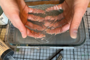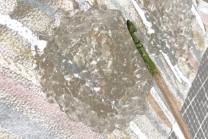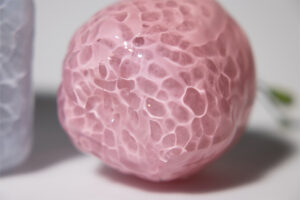 This Project contains a lot of water. The mold was made from algeapowder and water, wich together forms a gel. When extruded into a solution it creates strings, which I used to make different patterns and molds for glassblowing.