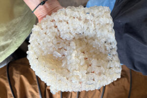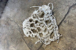 Dieses Projekt entsteht mit Wasser. Für die Form wird ein Gel aus Wasser und Algenpulver angemischt. Wenn man es in eine Lösung extrudiert entstehen lange, flexible Fäden, aus welchen ich verschiedene Muster und Formen gehäkelt und gewebt habe.