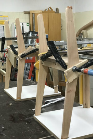 Wie kann ein Stuhl in einem extrem ökologisch verträglichen Kontext produziert werden? Ausgehend vom Fußabdruck der ZEITRAUM-Möbel entstand der Entwurf eines Stuhls, der komplett aus Holz besteht. Der Entwurf selbst ist ein Stapelstuhl, der sich auf die Frage konzentriert, was ein Stuhl im Kontext von objektorientierten Möbeln sein kann.