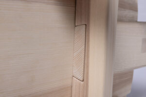 Um den ökologischen Fußabdruck so klein wie möglich zu halten, konzentriert sich das Design dieses Stuhls auf das Wesentliche. Dank eines durchdachten Gradleistensystems sind alle sechs Einzelteile zerlegbar und somit für den Versand im Flatpack geeignet. Insgesamt werden nur zwei Materialien benötigt: Massivholz und Holzleim. Durch seine Modularität ist es zudem einfach, defekte Teile auszutauschen oder zu reparieren.