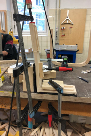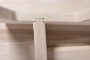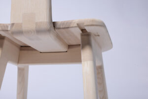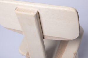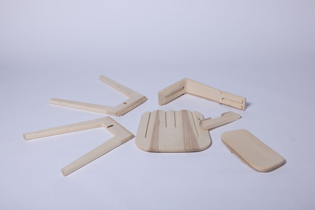 A chair with more to it than meets the eye. To keep the ecological footprint as small as possible, the design of this chair focuses on the essentials. Thanks to a well-thought-out dovetail system, all six individual parts can be disassembled and are suitable for flatpack shipping. Only two materials are needed: wood and wood glue. Its modularity also makes it easy to replace or repair defective parts.