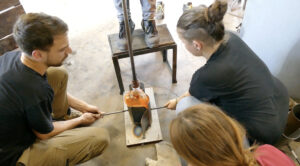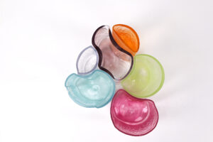 CELLAVIE is a set of interlocking vases where cellular structures are translated into glass forms, incorporating biological architecture into the design. The glass was blown into a metal sheet mold.