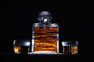 The WISKI set captures the essence of wooden surfaces to create the perfect environment for enjoying whiskey. A sandblasted wooden mold was used to showcase the natural patterns of wood, creating a long-lasting ornament that enhances the sensory perception of drinking whiskey.