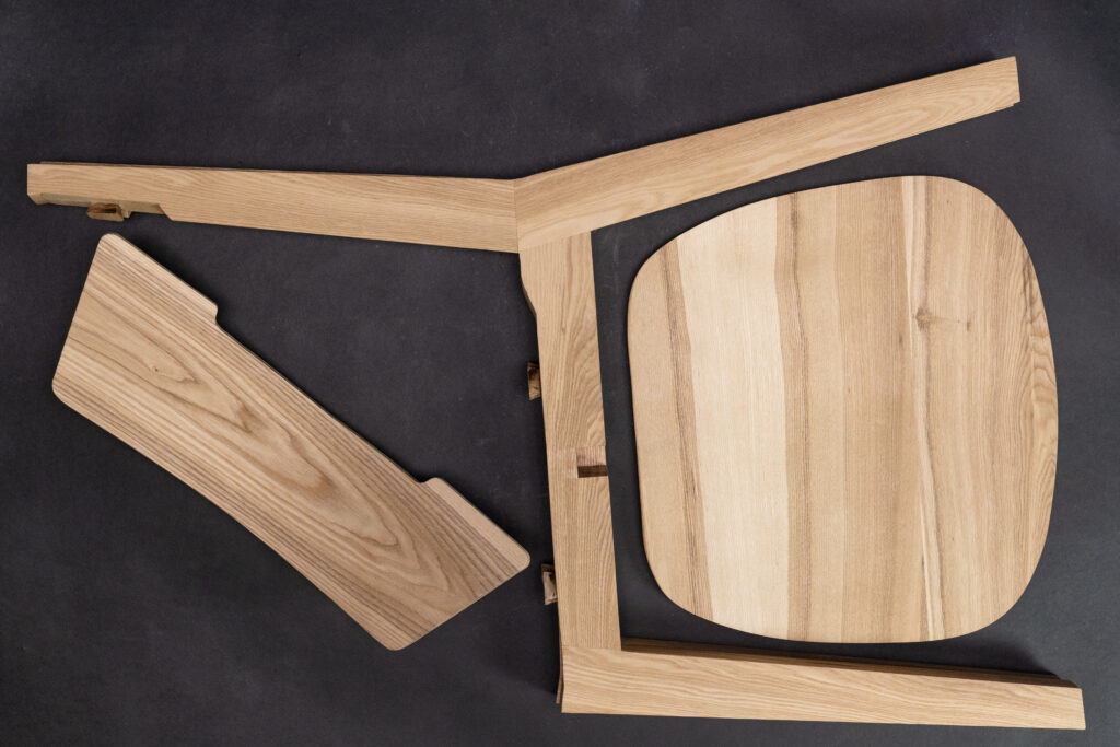 A chair that is assembled from four interlocking parts. From the very beginning of the design process, SNÄPP was created with sustainability in mind. It is made exclusively from solid wood and avoids the use of connectors like screws or similar components. The four parts are connected using a specially developed click mechanism. This allows the chair to be flat-packed, saving resources in storage and shipping.