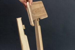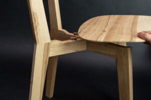 Ein Stuhl, der aus vier Teilen zusammengesteckt wird. Von Beginn des Design-Prozesses an wurde snäpp im Sinne der Nachhaltigkeit gestaltet. Er besteht ausschließlich aus Massivholz und verzichtet auf Verbindungselemente wie Schrauben oder Ähnliches. Die vier Elemente werden über einen speziell entwickelten Klick-Mechanismus miteinander verbunden. Dadurch lässt sich der Stuhl im Flatpack verpacken, um Ressourcen bei Lagerung und Versand zu sparen.