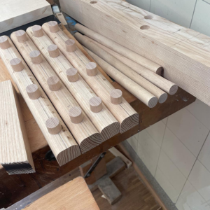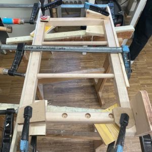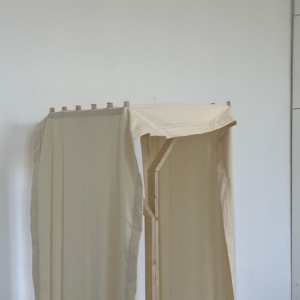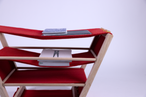 The SPANNUNG fabric shelving combines a wooden construction with fabric shelves, which are tensioned by round bar prongs. This gives the entire unit stability. This design enables flexible use, simple assembly, easy transport and separability of materials. The use of fabric reduces the weight and adds an aesthetic lightness. This experimental approach of a shelf aims to only use fabric tension to give a construction of 2 frames and 4 rods stability.