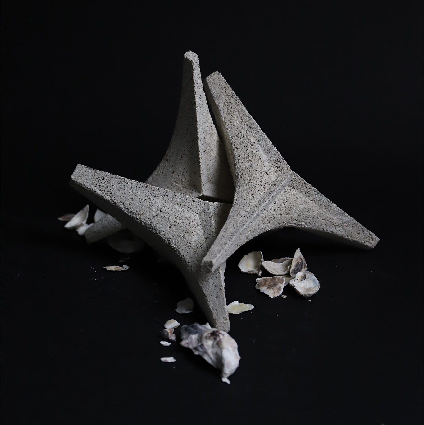 CARBOGEM is an artificial reef module made from a novel concrete developed in collaboration with Fraunhofer Institute. The material is based on renewable resources, with recycled oyster shell waste as the main component. Instead of using common cement for binding the oyster aggregate, it aims to use biocementation conducted by photosynthetic cyanobacteria. This approach can fix atmospheric CO2, converting the modules into carbon sinks.