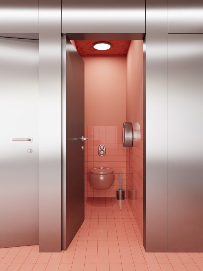 Communal toilets are often understood as neutral and functional infrastructures. However, they are fluid and contested spaces that serve as a prime example of current debates surrounding queer inclusion. The commonly accepted and standardized design norms within a binary spatial policy appear unchangeable and additionally presuppose unequally privileged gender roles. These norms reinforce and reproduce outdated gender concepts while excluding „other“ gender identities. In this debate, both opponents and proponents of gender-neutral toilets argue for greater safety within these architectures. As a result, changes and redesigns of such spaces often prove difficult or even impossible, with debates typically ending in emotionally charged confrontations or even hostility.