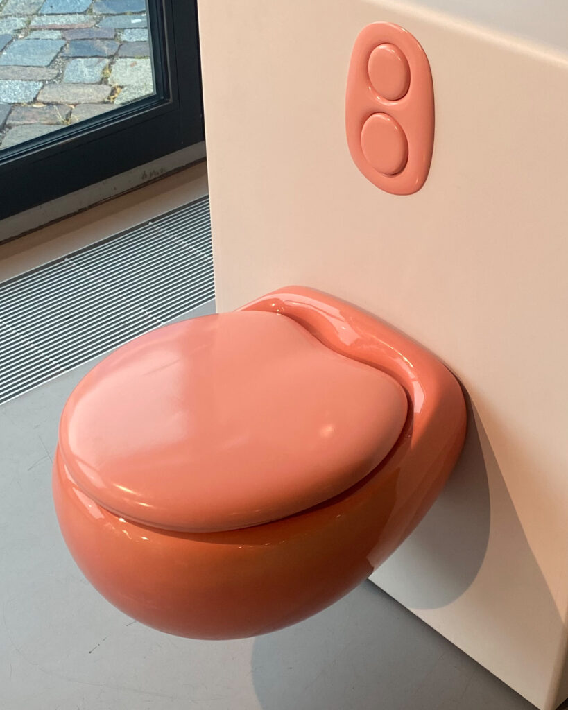 The Queering Bathrooms project deepens the conversation about queer life and its marginalized position—particularly in light of the increasing hostility against LGBTQIA+ people from the political right—and examines the „bathroom problematic“ from a design-theoretical and creative perspective. The pink toilet, with its outstretched tongue, serves as an irrational counter-response to the heated discourse. Through self-irony and aesthetic intervention, seemingly self-evident conventions are humorously broken down, aiming to signal a radical shift in power in favor of queer individuals. The project invites a shift in perspective and puts Queering Design as a strategy up for discussion: Is it ultimately an aesthetic style that seeks to wrap things in an artificial, inflated pink-plush shell, similar to a Yassification face filter? Or does Queering Design, with its rebellious and campy nature, aim to highlight the exclusion and stigmatization of marginalized individuals, as it fundamentally expresses a materialized desire for belonging and recognition?