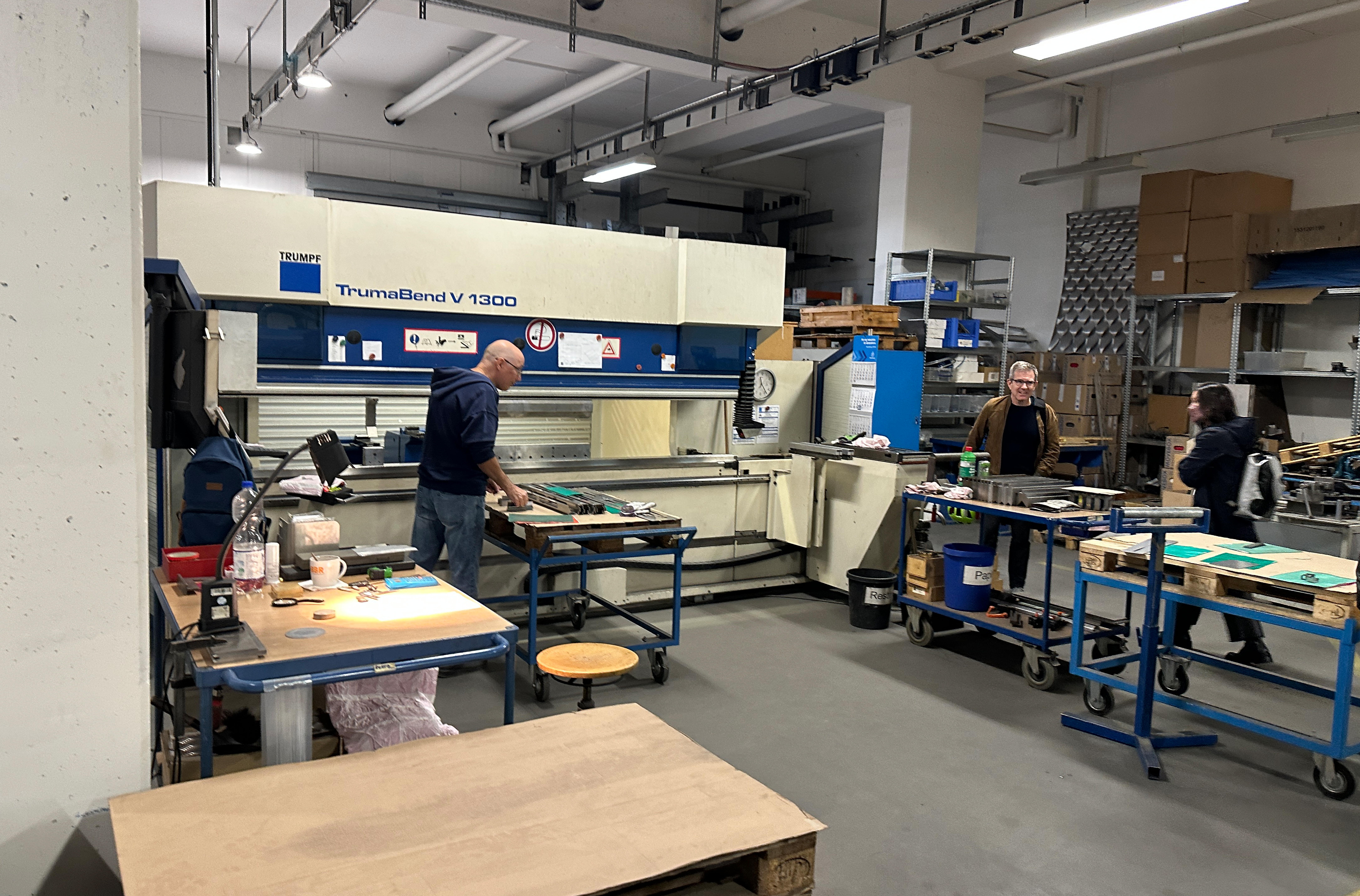 Wir lernen wichtige Materialeigenschaften und Blechkonstruktionen kennen und anwenden. Insbesondere Aussteifungen und Verbindungen. Blindnieten und verschiedene Laschungen werden als Verbindungstechnik eingesetzt. Unterstützt werden wir durch den Konstruktions-Experten Malte Licht (www.oxyd-gmbh.de). Wichtigstes Arbeitsmittel für euch wird der Bau von 1:1 Modellen aus Pappe sein. Im späteren Verlauf können diese bei Bedarf auf dem Schneidlaser in R405 als exakte Modelle hergestellt werden. Ziel ist letztendlich, eine 2D-Abwicklung zu entwerfen, aus der alle notwendigen Bauteile gekantet werden. Die Abwicklung wird noch vor Weihnachten in Solidworks in eine 2D CAD-Datei übertragen. Für den gesamten Prozess ist die frühzeitige Übertragung in ein CAD Modell sehr wichtig, deshalb ist die Teilnahme am CAD-Begleitkurs bei Anna Windrich (Mittwoch 10:00-12:45 Uhr) verpflichtend.