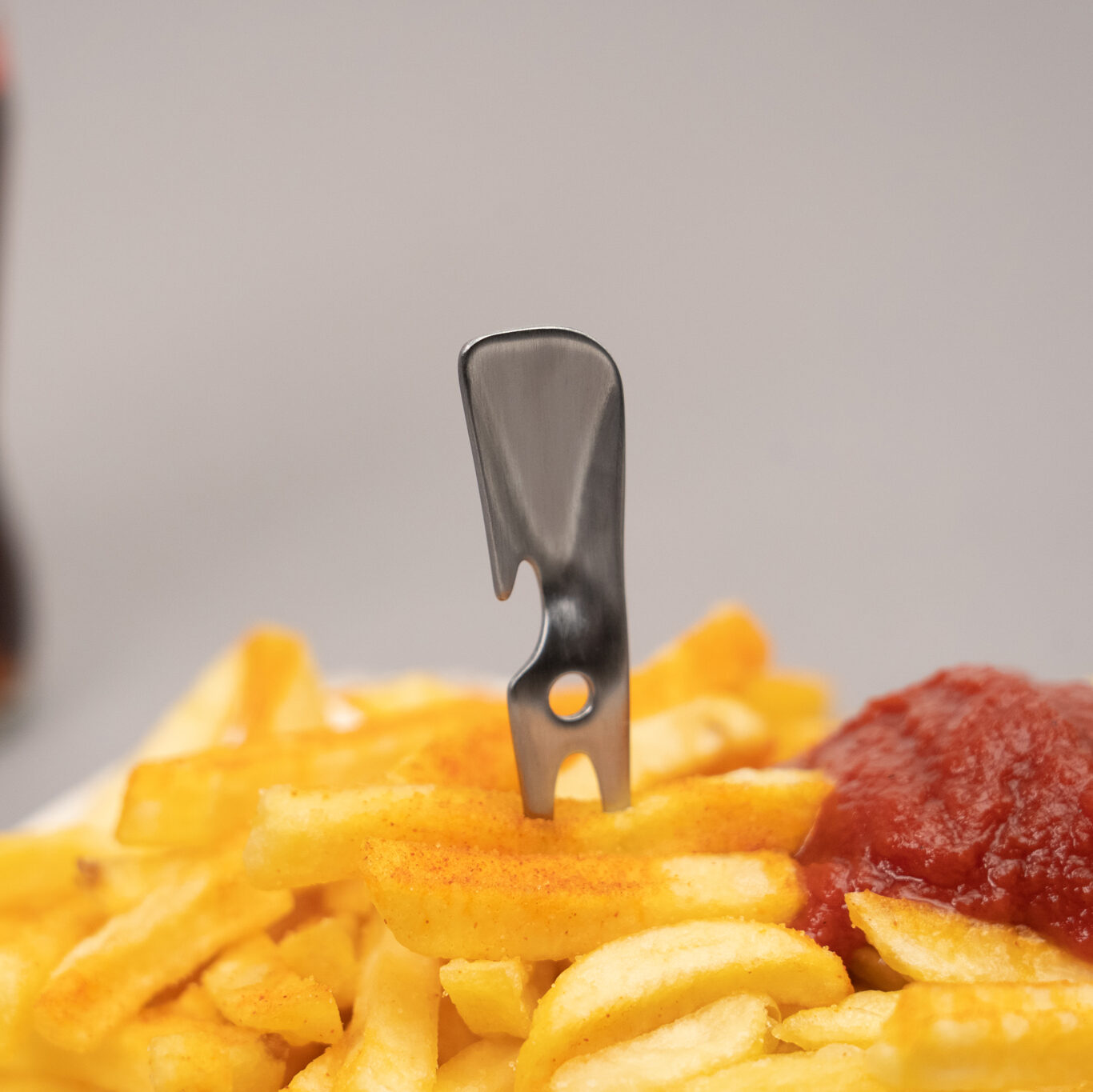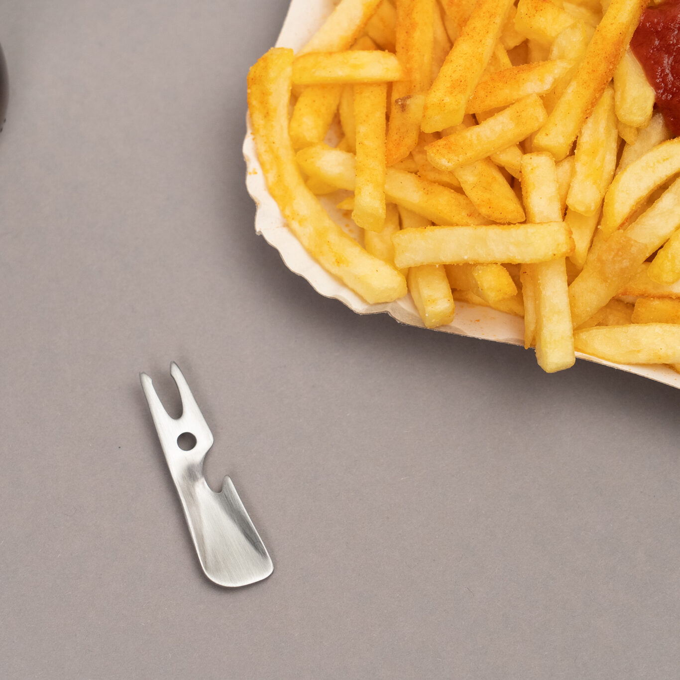 compagno is designed to replace disposable cutlery for fast food such as chips and ice cream. The multi-tool is small, space-saving and can be taken along and integrated into everyday life without any restrictions. The cutlery is like another key on a bunch of keys that can be used to take another decisive step towards a sustainable reusable alternative for the future.