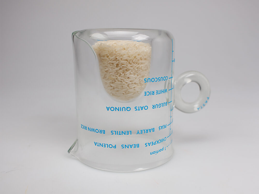 Mit diesem Gerät kann man die genaue Menge an Wasser und trockenen Lebensmitteln abmessen, um Wasser- und Lebensmittelverschwendung zu vermeiden.