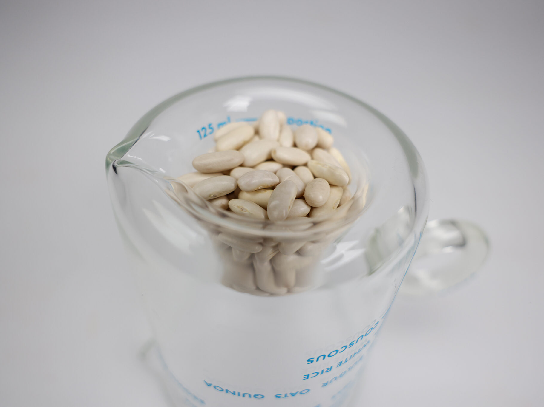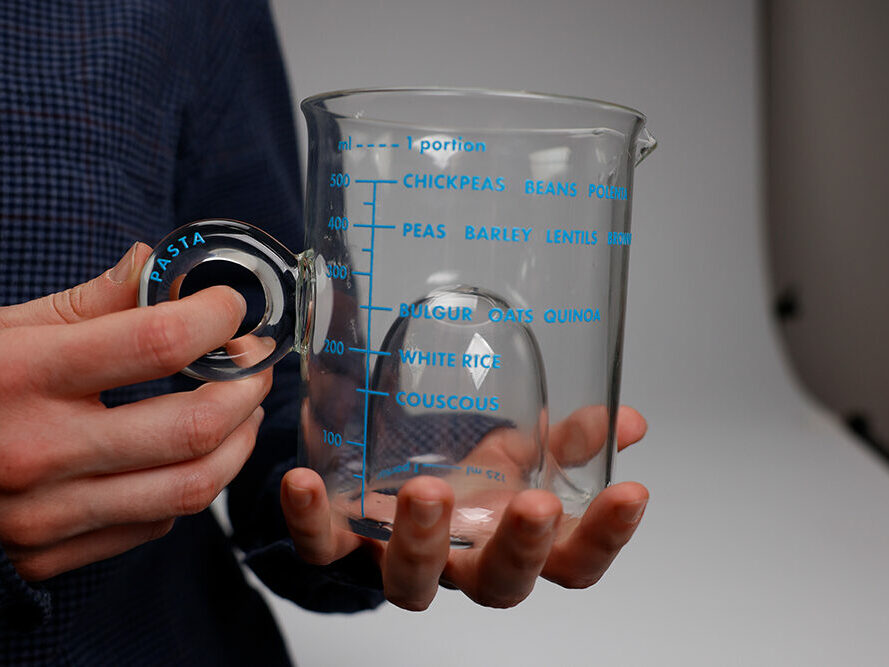 Eine Seite des Geräts dient zum Abmessen einer Portion verschiedener trockener Lebensmittel, die andere