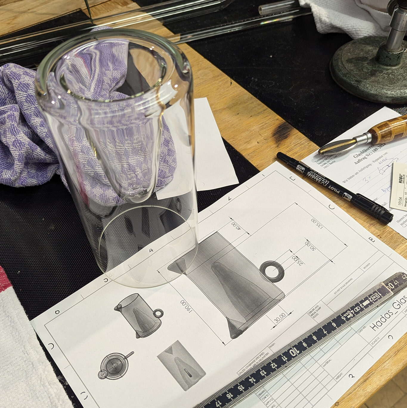 MEALO wird aus Borosilikatglas in Zusammenarbeit mit der Glastechnischen Werkstatt der Technischen Universität Berlin hergestellt.