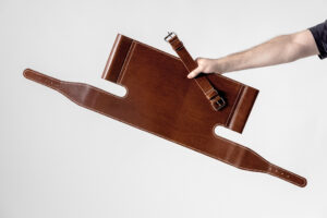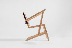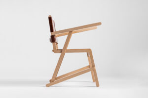 Meticulous craftsmanship was used to create interlocking wooden connections and leather stitching. Modern CNC-milling adds ergonomic curves to the seat and wooden backrest.