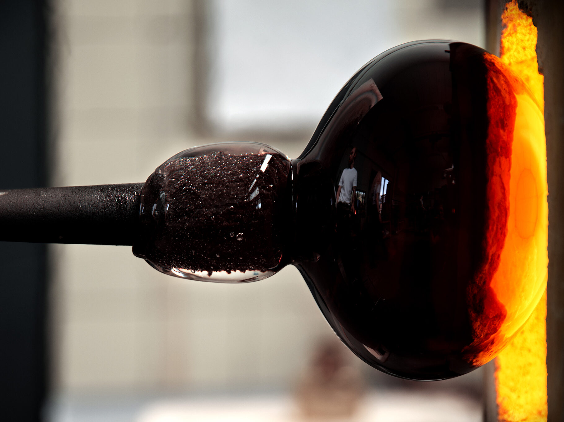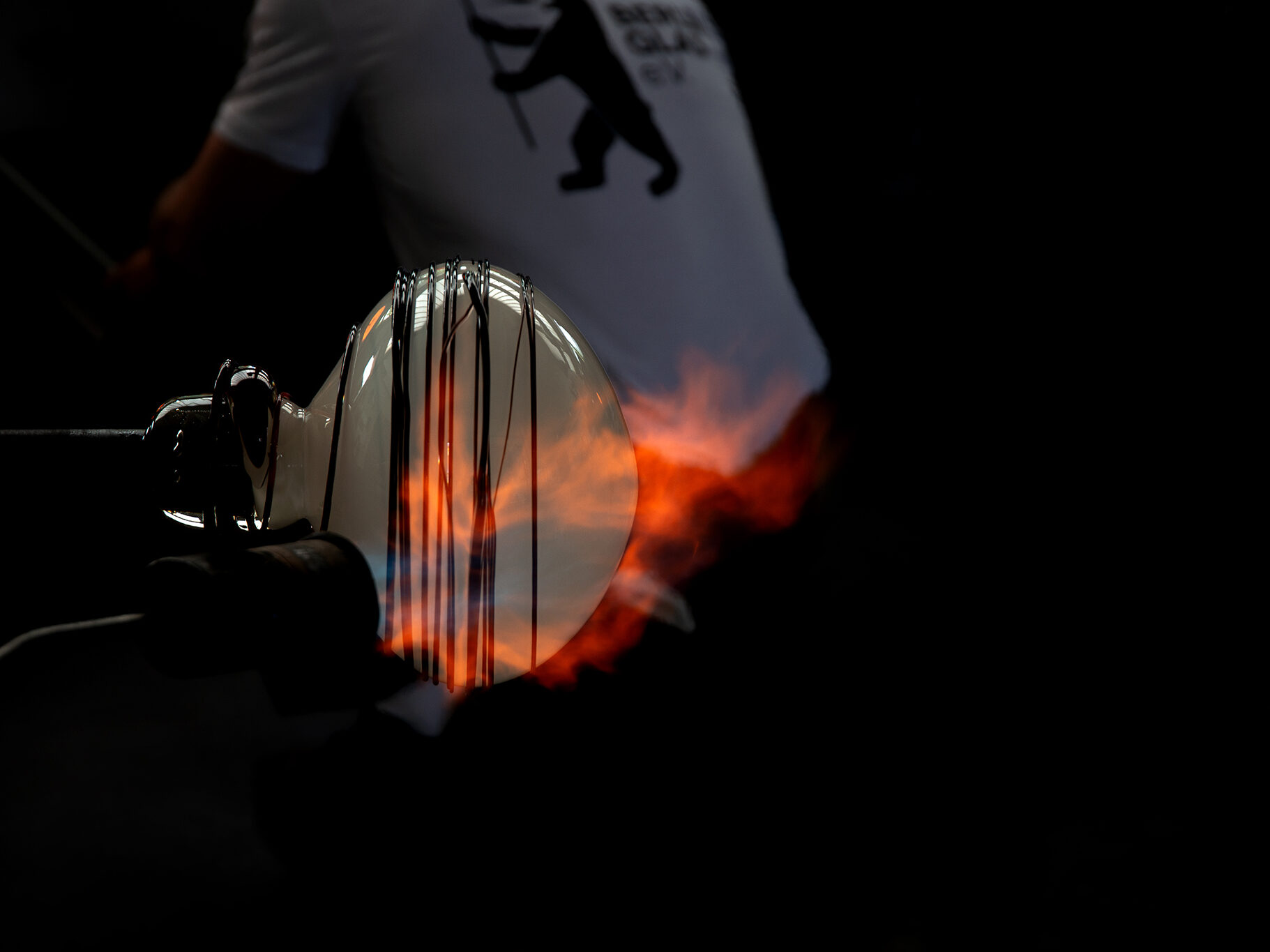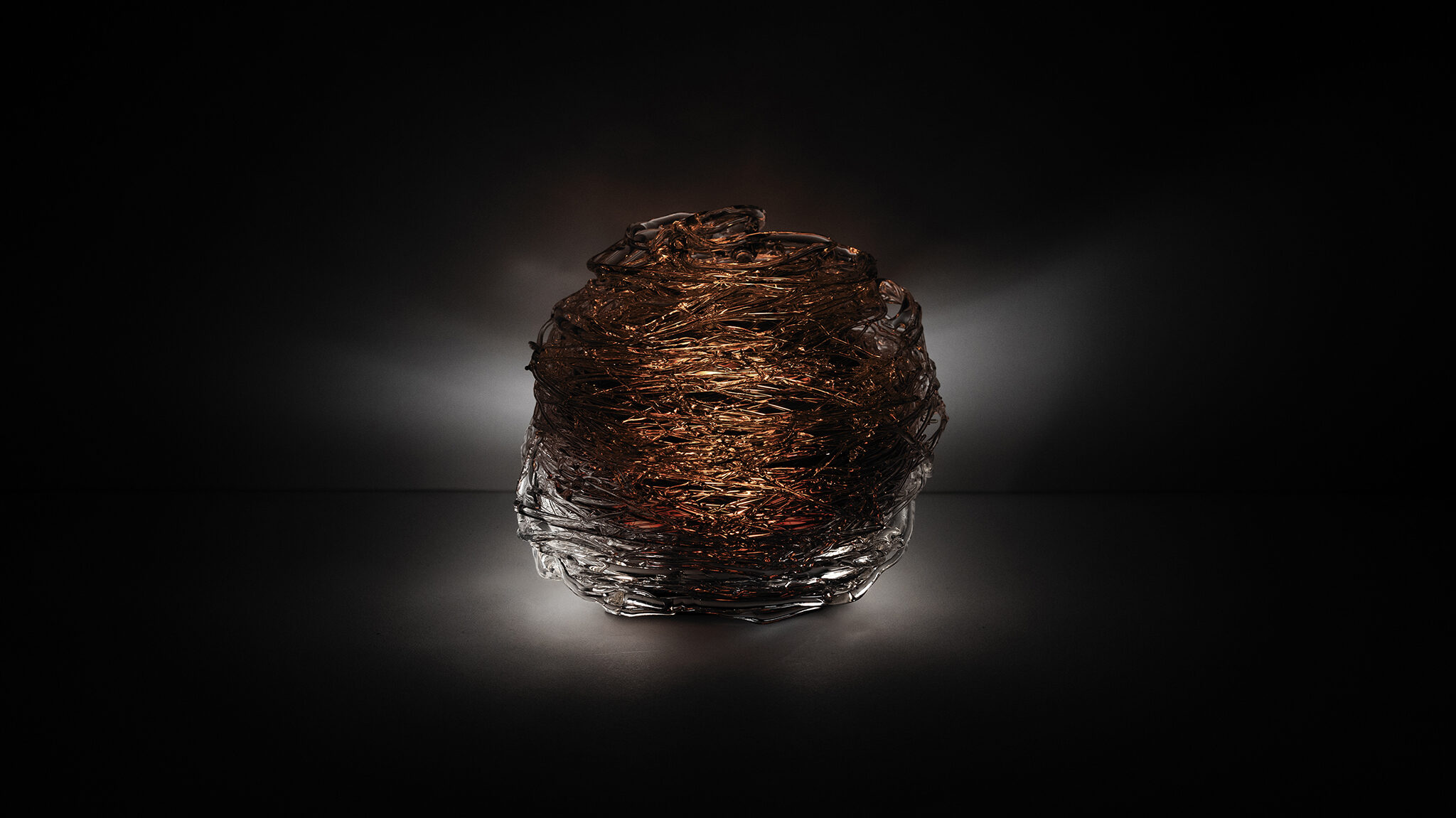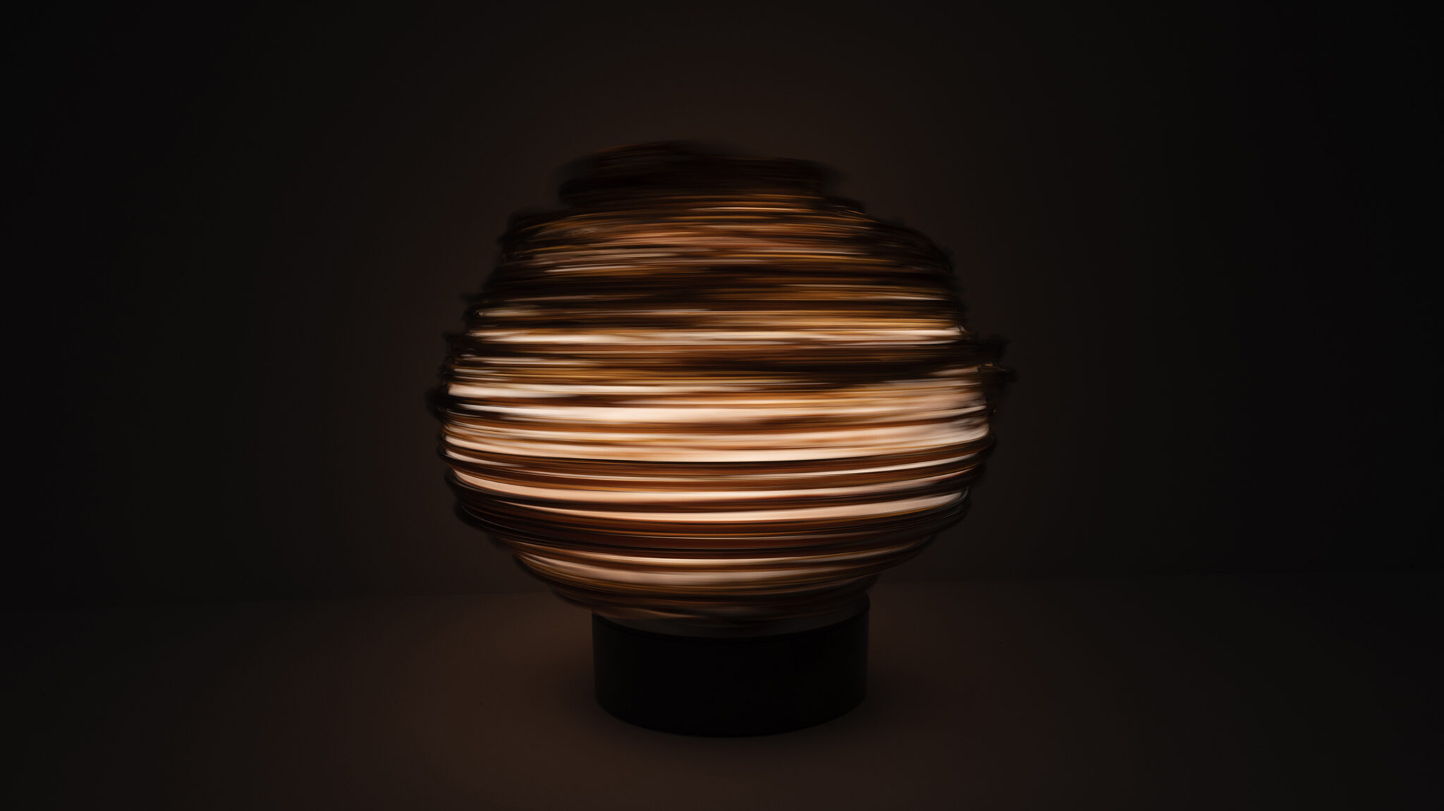 Die Baclava Lampe macht traditionelles Glashandwerk zum Experiment. In Zusammenarbeit mit Berlin Glas e.V. erkunden die leuchtenden Objekte, wie Glas unübliche Formen annehmen kann. Dafür werden feine Glasfäden um konkave Kugeln gewickelt – eine Anspielung auf die filigranen Schichten der türkischen Süßspeise.