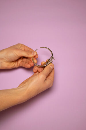 Filipa ist ein Armreif, dessen Detail aus Neusilberdraht um sich selbst gedreht werden kann und immer wieder in den Ausgangszustand zurückspringt. Der Tragegurt für Umhängetaschen Skara mit wellenförmiger Naht und Neusilberdraht, kann zusammengedrückt werden und gibt Halt in Momenten der Reizüberflutung. Der Aluminiumguss Oni stimuliert die Handinnenfläche lediglich durch Druck der eigenen Finger und unterstützt dadurch in Situationen, in denen voller Fokus erforderlich ist.