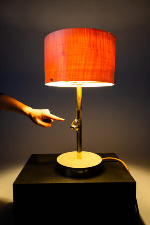 Die Wahl von Riegelahorn mit seiner einzigartigen Maserung für den Lampenfuß und den Lampenschirm sorgt für eine elegante Haptik. Das Holz stammt aus nachhaltiger Forstwirtschaft, ist langlebig und widerstandsfähig gegen Abnutzung. Zudem ist Ahorn besonders transluzent, sodass im Dunkeln die Maserung von innen heraus erstrahlt. Zusammen mit dem Messing MS63, einer Legierung, die für ihre Verarbeitbarkeit und antibakteriellen Eigenschaften bekannt ist, bietet die Lampe sowohl ästhetische als auch funktionale Qualität. Messing altert auf natürliche Weise und entwickelt mit der Zeit eine charakteristische Patina. Darüber hinaus sind an der Lampe keine Komponenten miteinander verklebt – Holz, Messing und die elektronischen Teile können sortenrein entsorgt und recycelt werden.