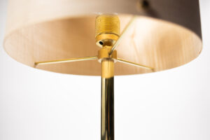 The lamp’s technology is kept simple, ensuring easy usage. A 3-stage touch dimmer, connected to all the brass parts, provides easy control. While the nose is designed as the switch, other parts of the lamp can also be used for this purpose. The E27 socket allows the use of modern LED bulbs, as well as halogen or incandescent bulbs. Everything is securely connected through tool-free Wago connectors, which also make it easy to replace components if necessary.