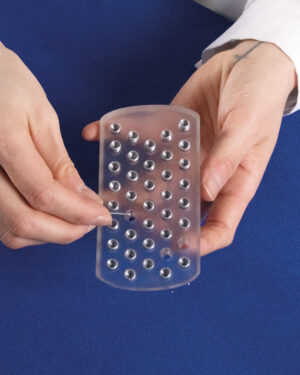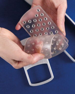 STACCATO fordert eine Neubewertung der Struktur von Konsumgütern. Inspiriert von den Prinzipien des Design for Disassembly und des Right to Repair entstand eine Bürste, die sich in 44 Einzelteile zerlegen lässt. Die Borsten, wahlweise aus Nylon oder Wildschweinhaar, sind zwischen zwei Silikonbetten fixiert, die Stabilität und Flexibilität zugleich bieten. Das konische Gehäuse besteht aus dem gleichen Material wie die Borsten, was eine vollständige Recyclingfähigkeit gewährleistet. Der Griff und der Fixierrahmen bestehen aus anodisiertem Aluminium, das kratzfest, korrosionsbeständig und für die langfristige De- und Montage äußerst robust ist. Dieser Designansatz eröffnet Spielraum für die Verwendung alternativer Materialien und Costumization.