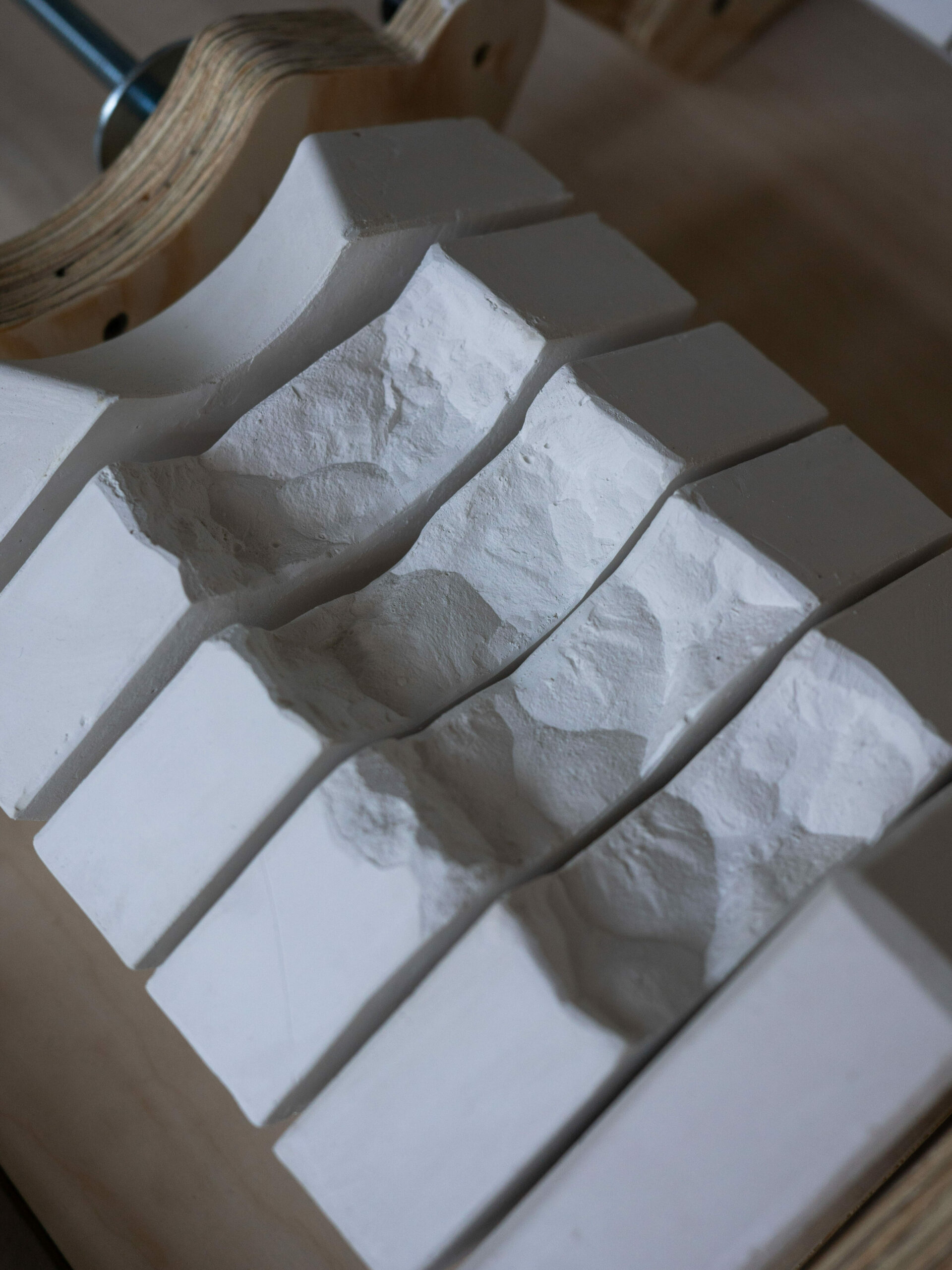 Die Fault Line Collection fängt diese Spannung in Trinkgefäßen ein, in denen Glas die zerbrochene Textur von Stein annimmt und modulare Gussformen jede Kontur formen. Taktile Spuren der materiellen Herkunft und Herstellung in alltäglichen Ritualen.
